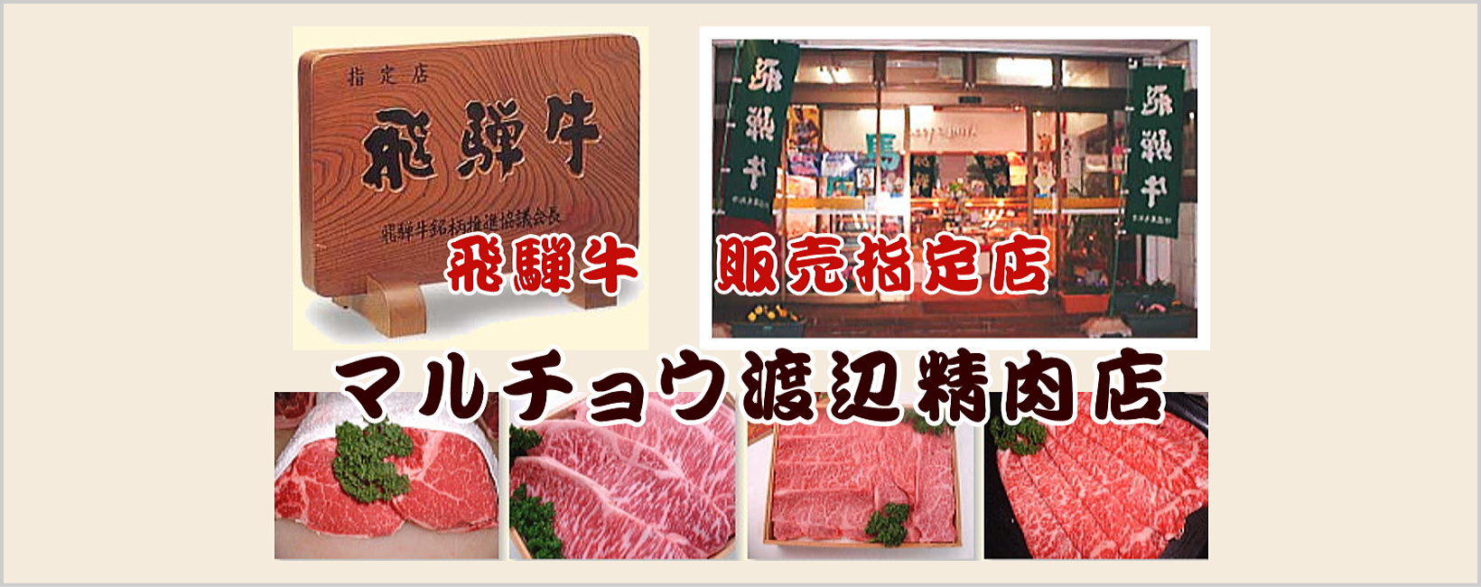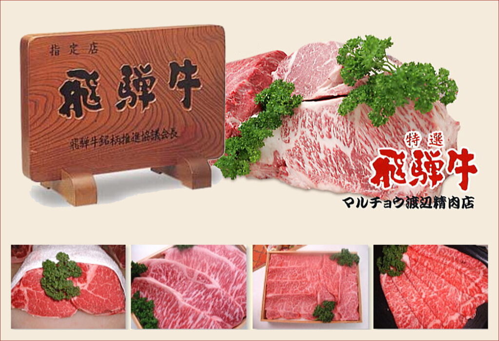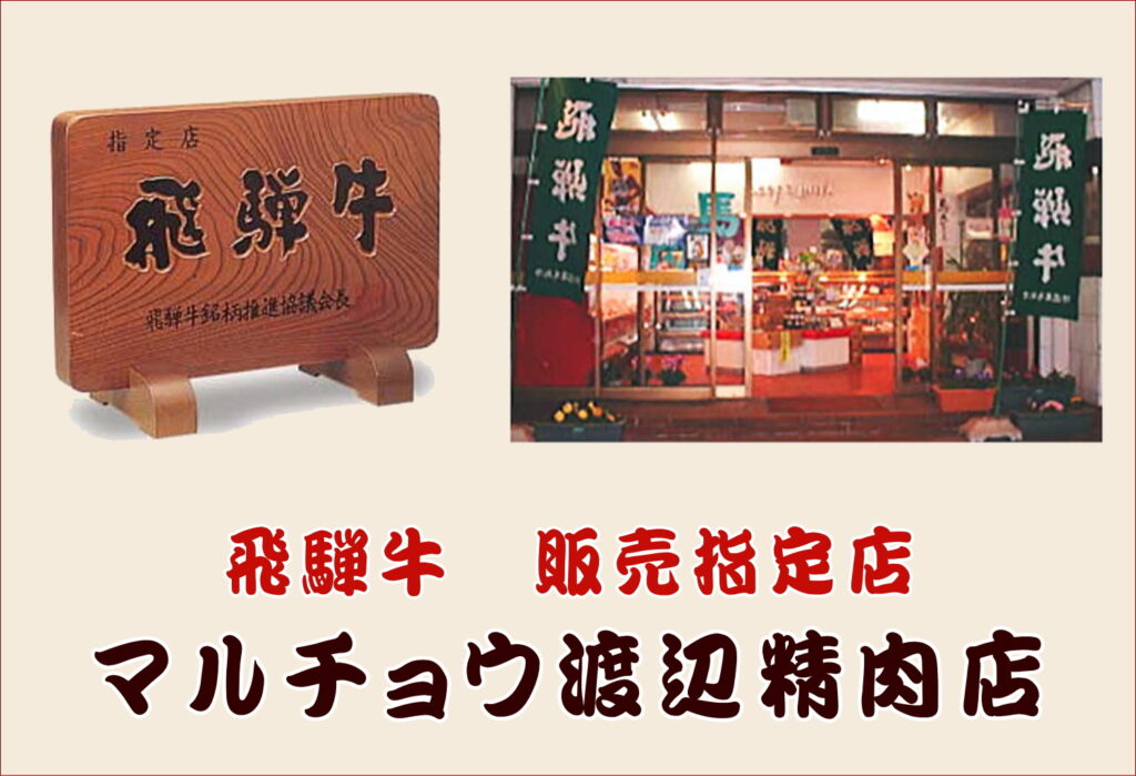 創業80年。飛騨牛、美濃けんとんの販売指定店マルチョウ渡辺精肉店。代々伝わる炭火焼焼豚・飛騨牛コロッケは、テレビでも放映された人気の商品です。